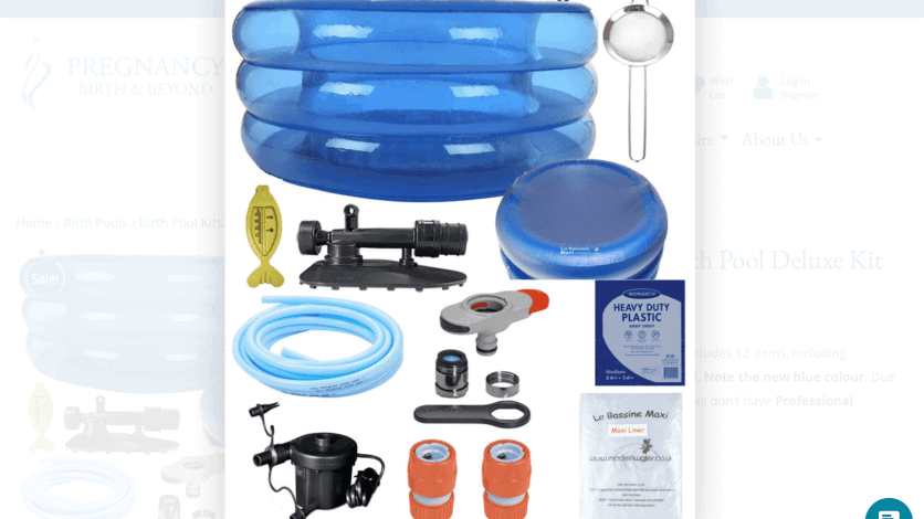 Our La Bassine Maxi Professional Birth Pool Deluxe Kit includes 12 items, including everything you need to inflate, fill, and empty a birth pool.